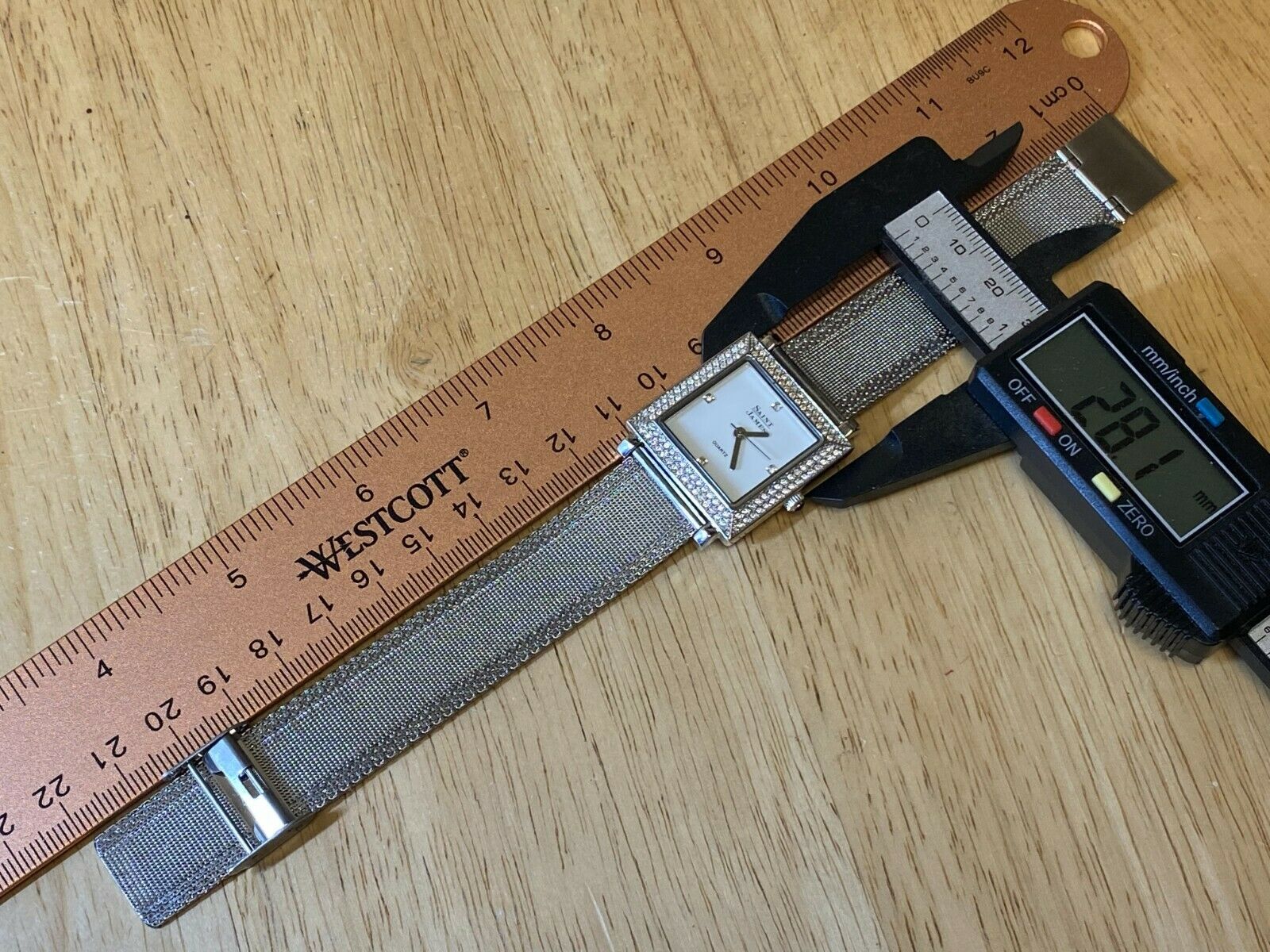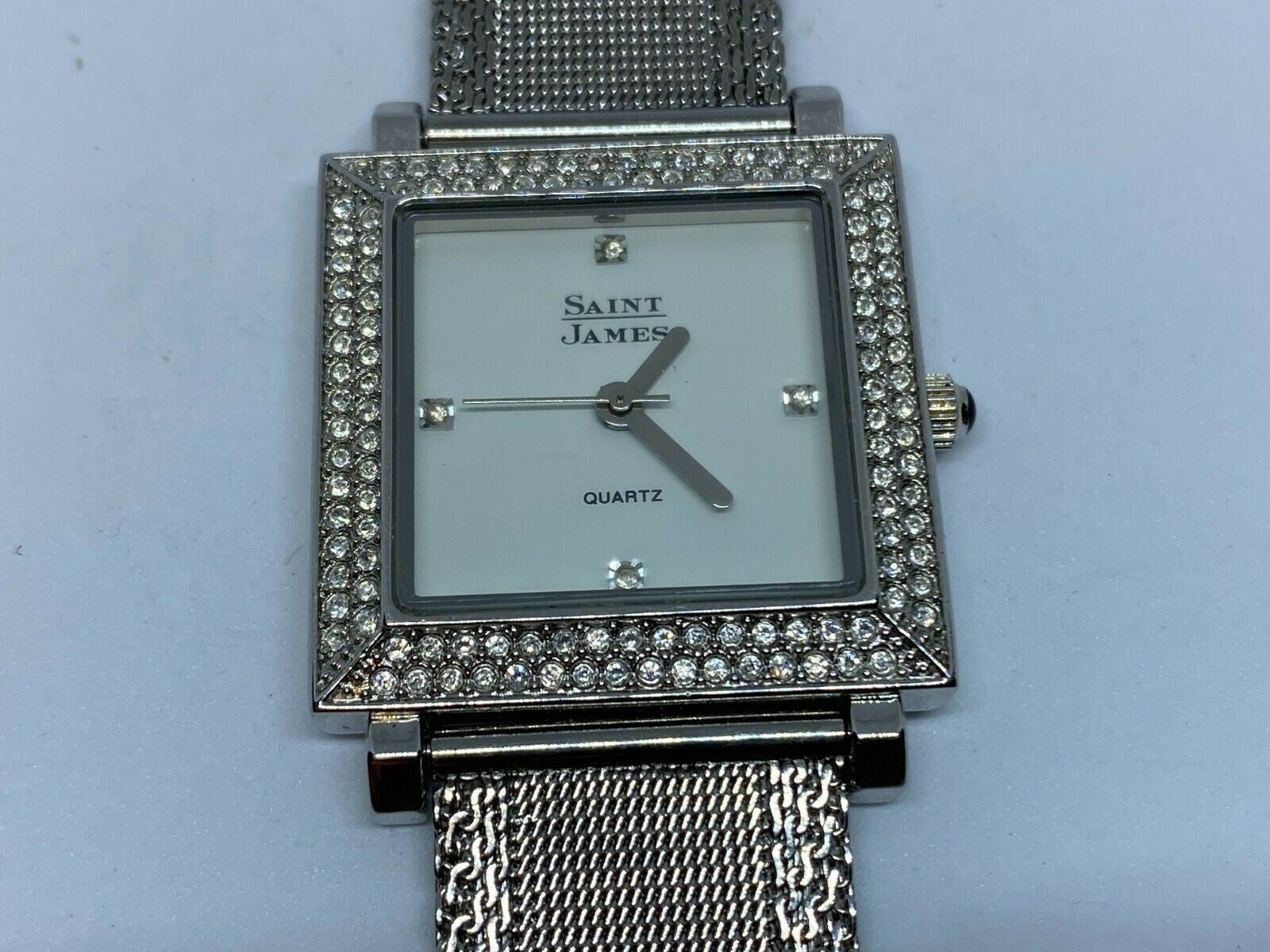 Saint James Men Lady Rhinestone Square Mesh Analog Quartz Watch Hour~New Battery