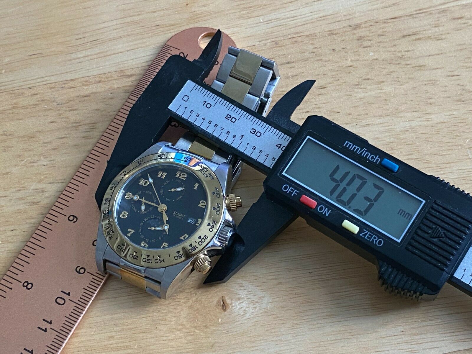 For approximate size of the watch and length of band, please see the last image with a ruler scale placed next to the watch. Please be advised that this is an used watch; its band may have been adjusted (shortened, links removed etc) to fit wrist of the previous owner; we DON'T have extra links. So it is very important to make sure the overall length will be long enough for your wrist.