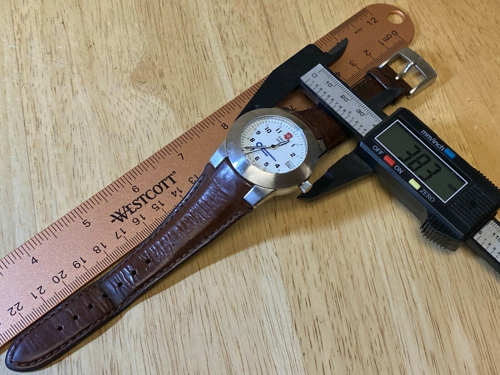 Watch dimension and size: please review the last image for size measurements. Shown on caliper is the approximate watch width in mm without crown or button.
