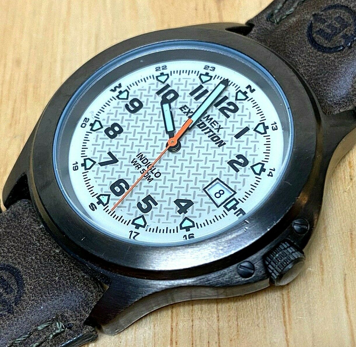 Timex Expedition Men 50m Gun Metal Leather Analog Quartz Watch Hours~New Battery