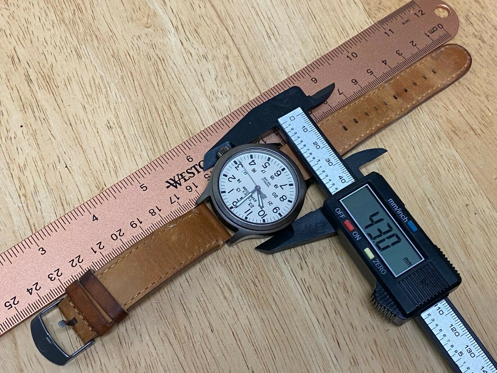 Watch dimension and size: please review the last image for size measurements. Shown on caliper is the approximate watch width in mm without crown or button.