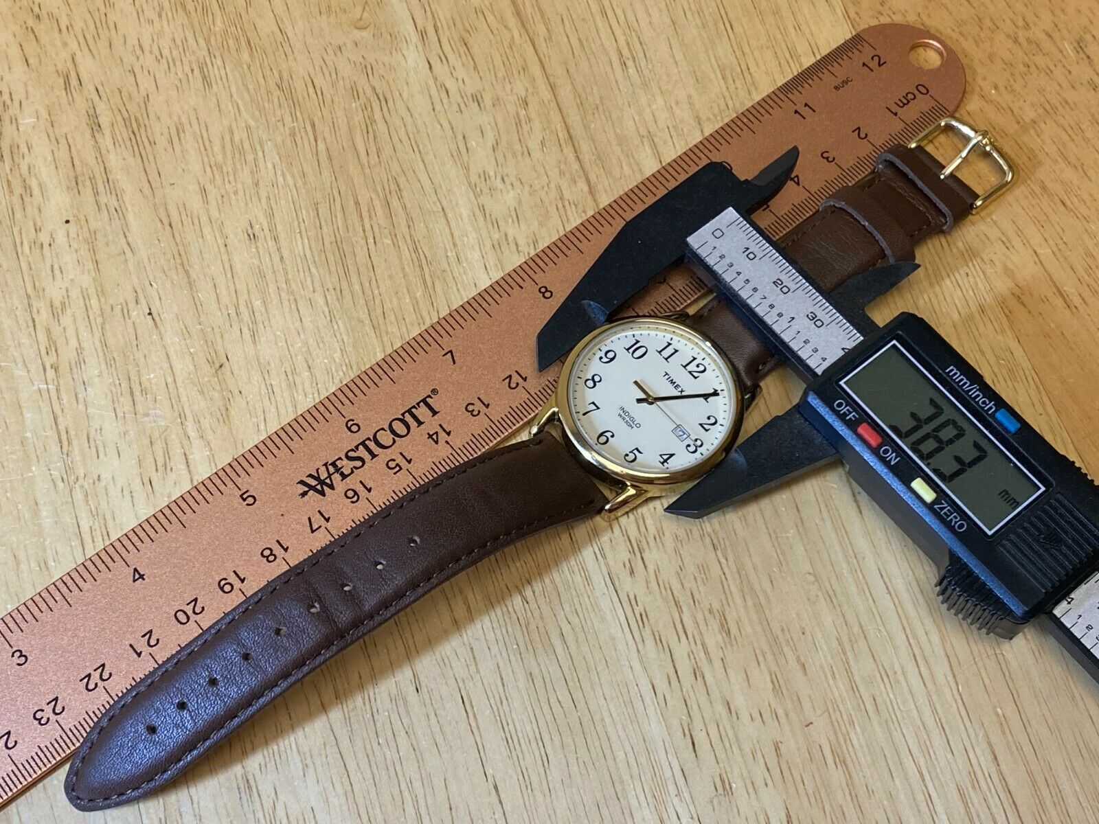 Watch dimension and size: please review the last image for size measurements. Shown on caliper is the approximate watch width in mm without crown or button.