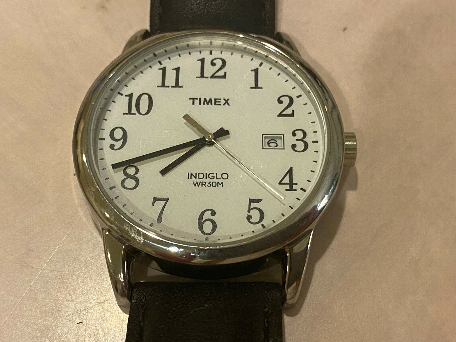Timex Indiglo Men 30m Silver White 38mm Analog Quartz Watch Hour~Date~New Batter