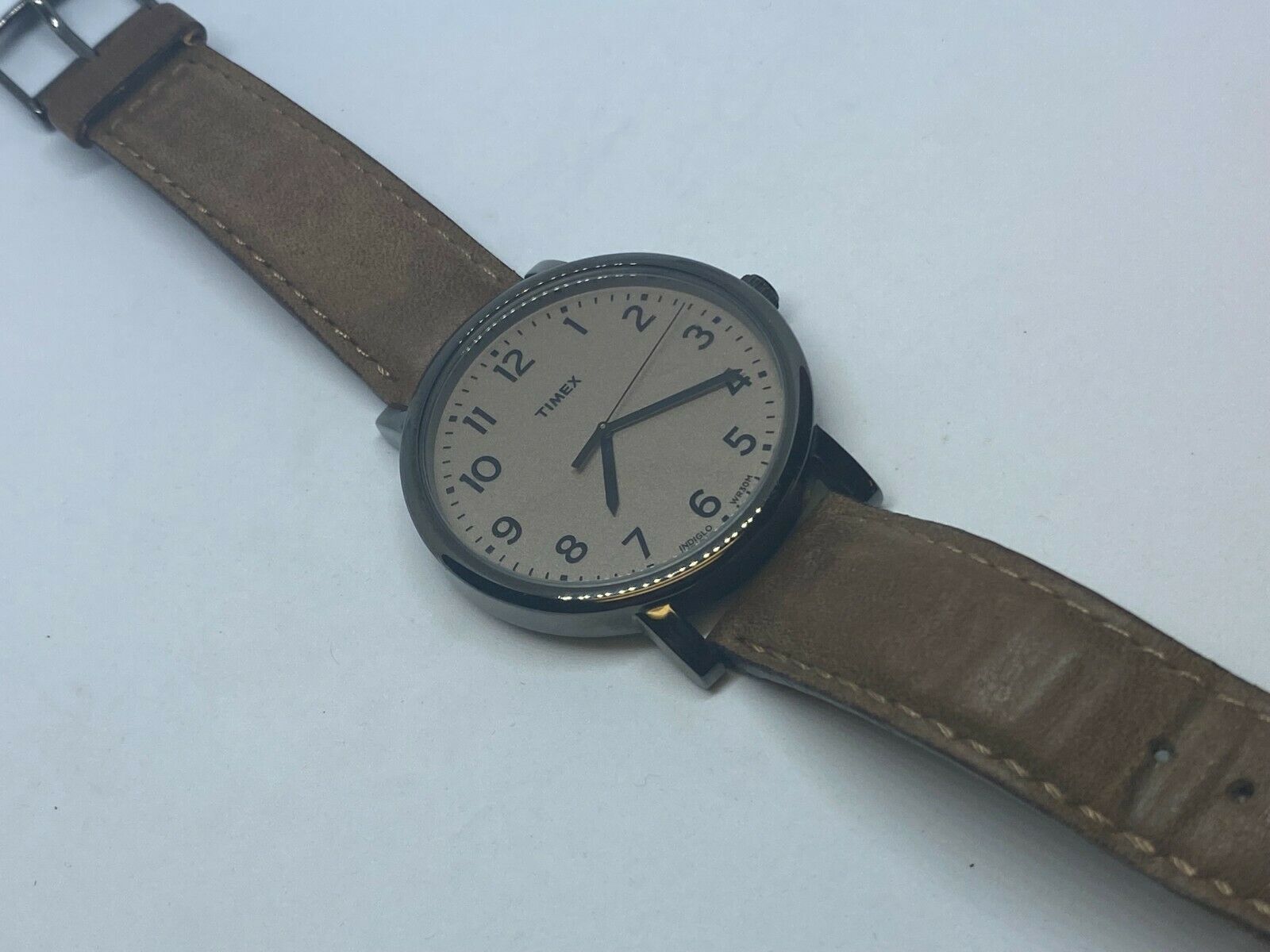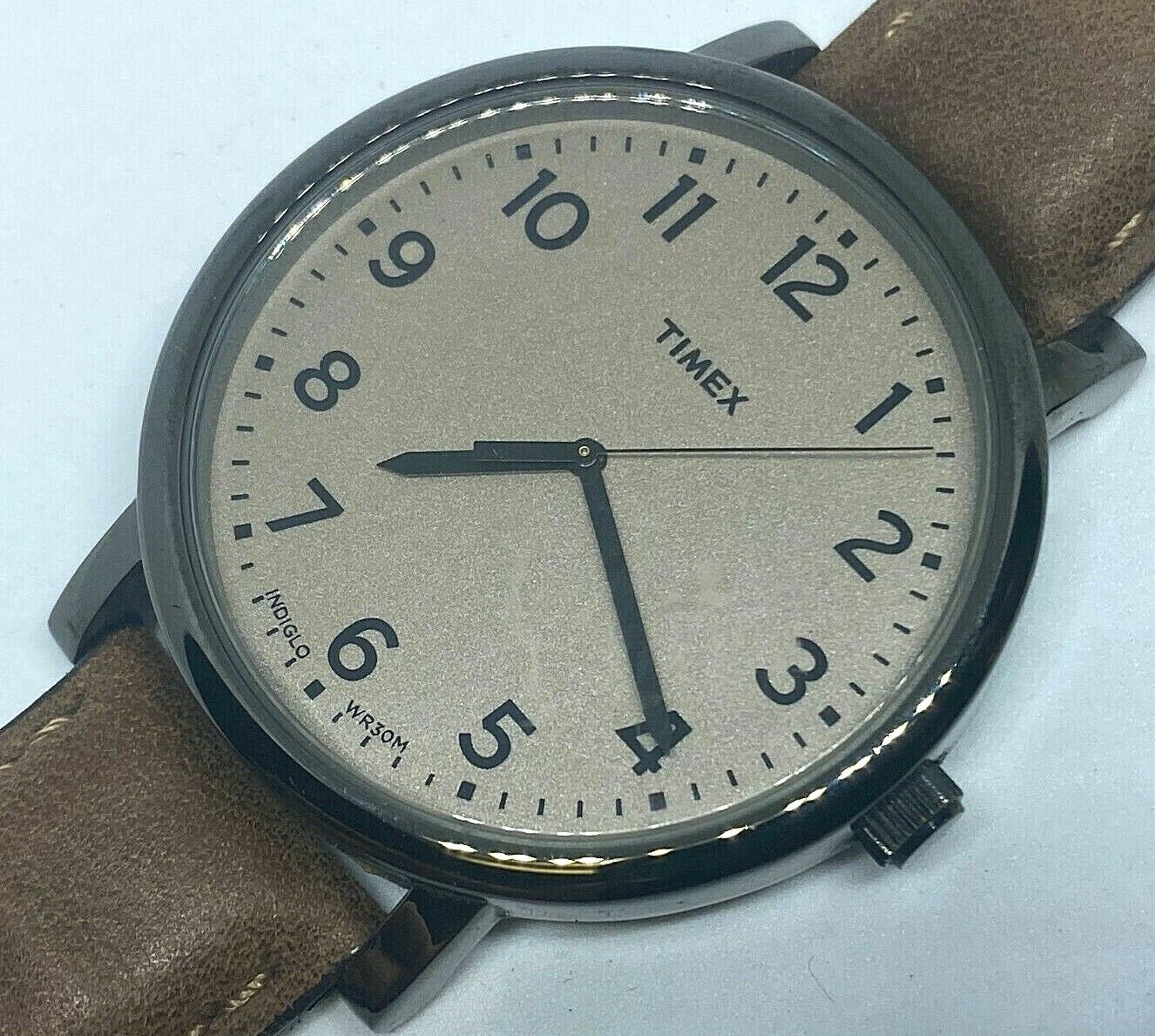 Timex Indiglo Mens 30m Black Brown Leather Analog Quartz Watch Hours~New Battery