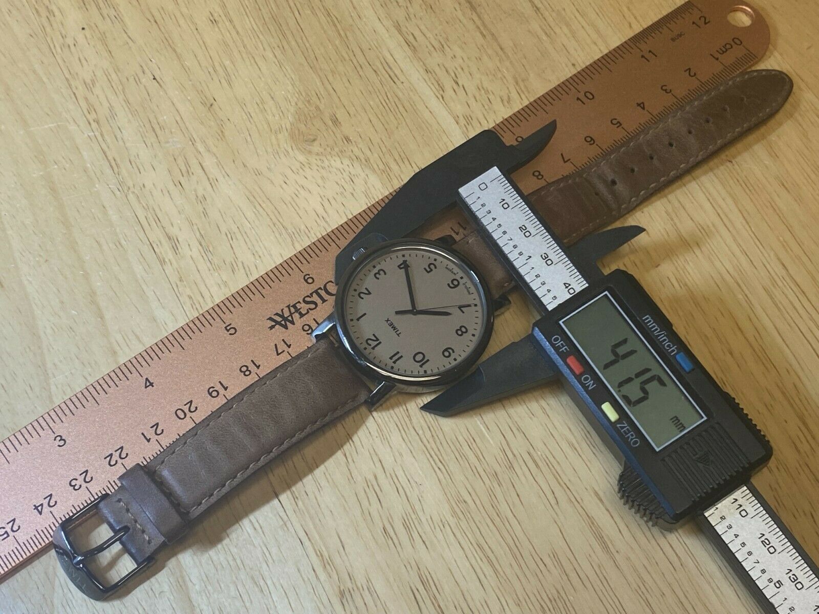 Watch dimension and size: please review the last image for size measurements. Shown on caliper is the approximate watch width in mm without crown or button.