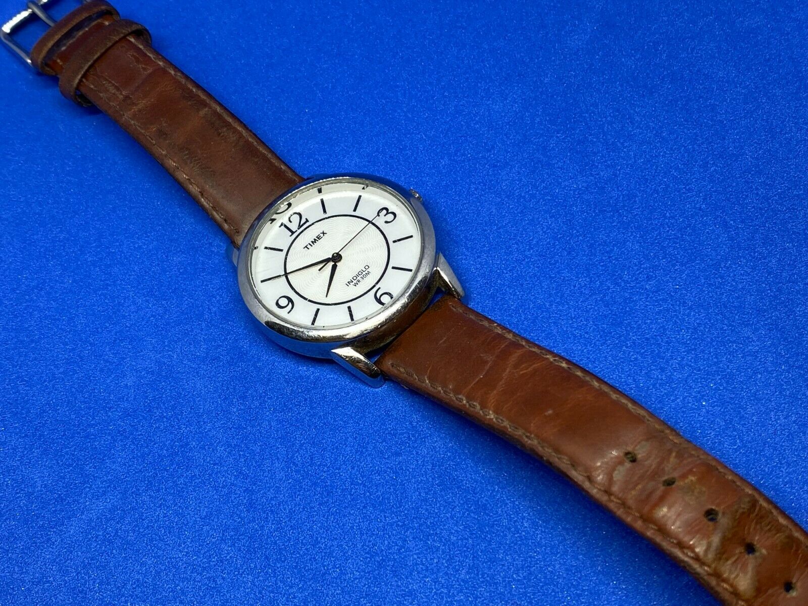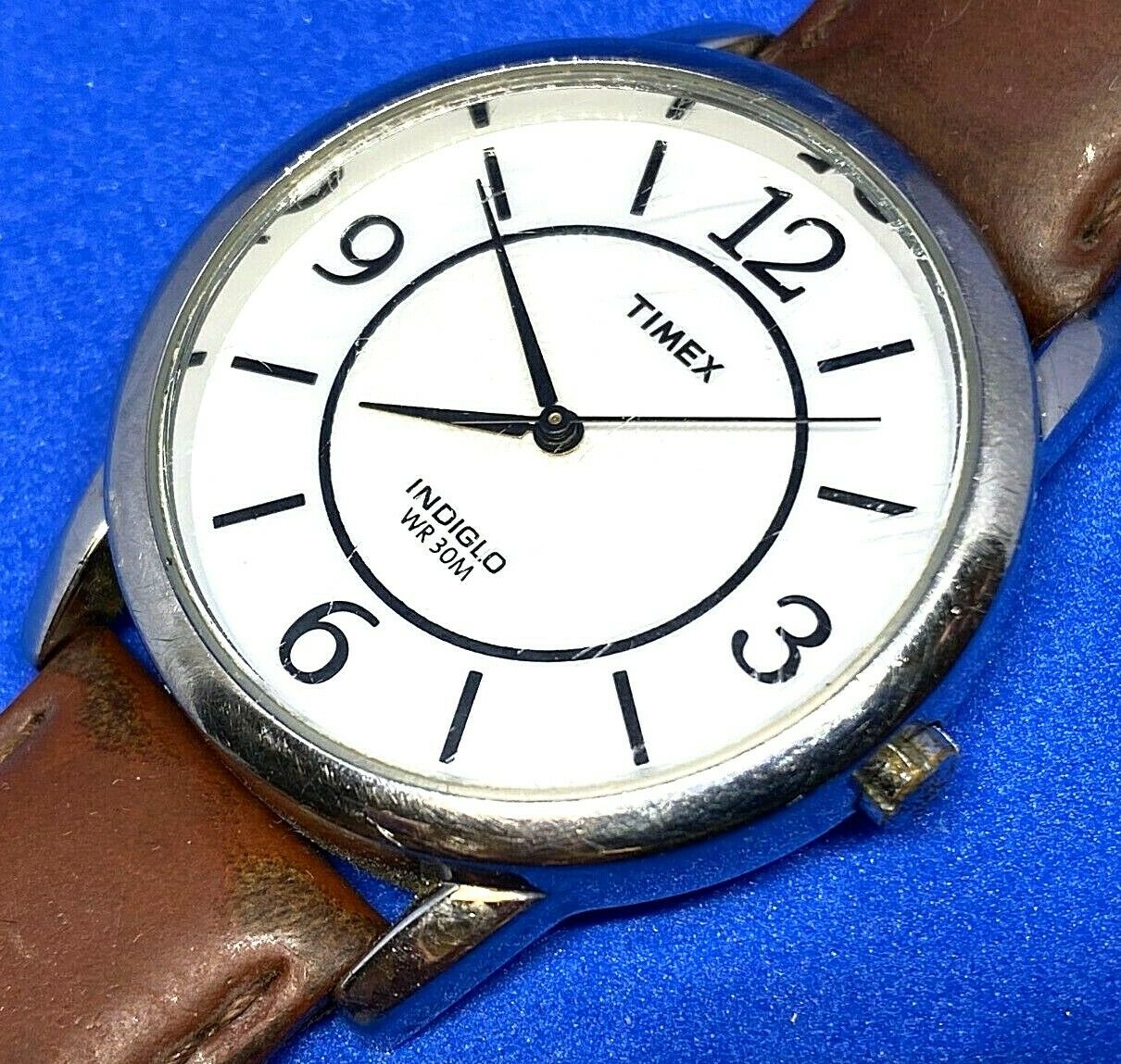 All vintage and used watches are expected to show certain wear, from "hard to see" to light to significant. Such wear is particularly common on leather bands if equipped, which could be significant in some watches. We try to take clear pictures for each watch we offer to sell. It is important to review all images attached to listing to make your own judgment on the cosmetic condition of the watch.