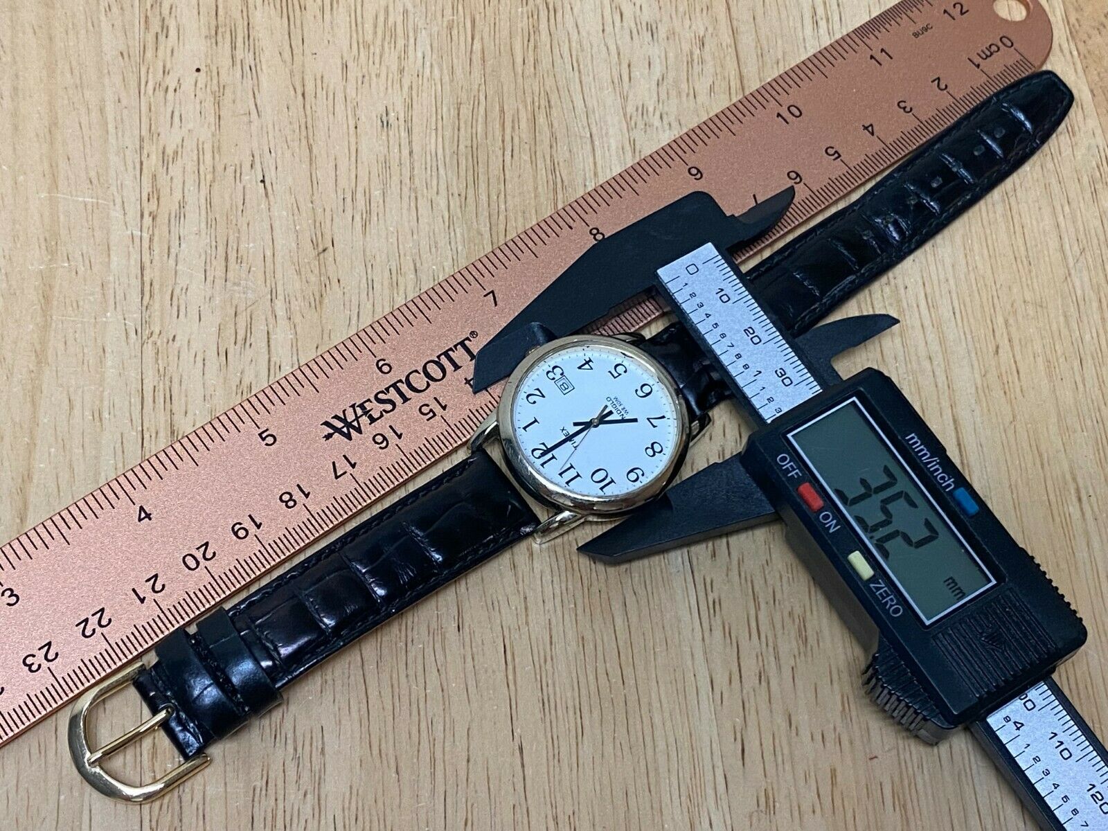 Watch dimension and size: please review the last image for size measurements. Shown on caliper is the approximate watch width in mm without crown or button.