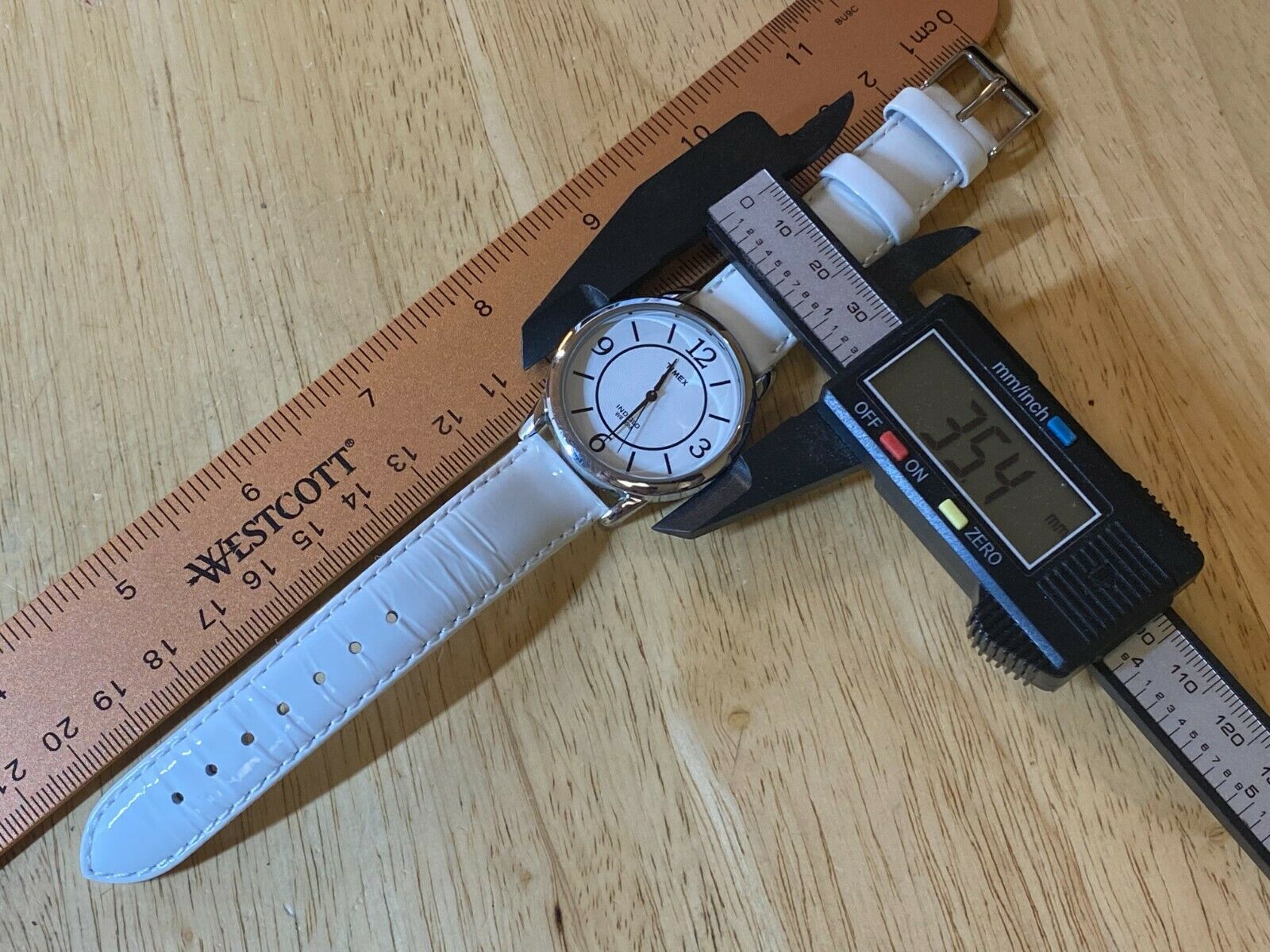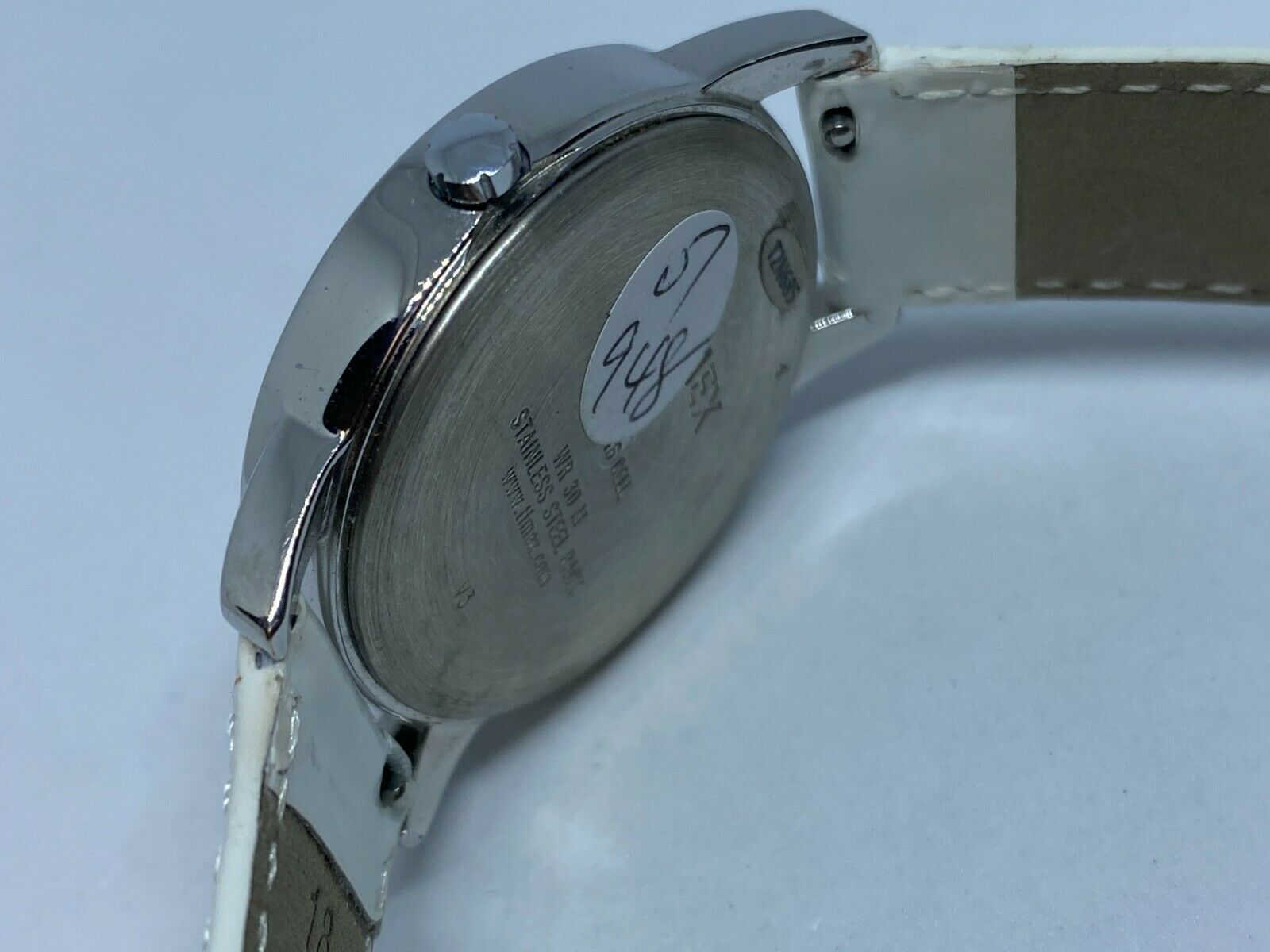 Timex Men Silver White Textured Dial Leather Analog Quartz Watch Hour~New Batter