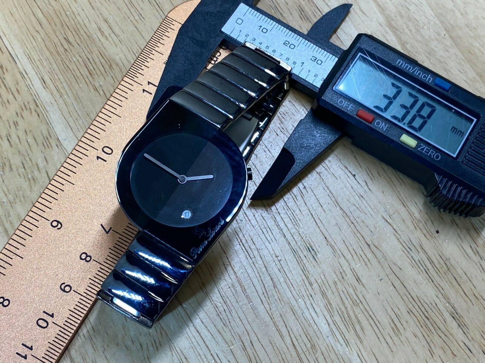 Watch dimension and size: please review the last image for size measurements. Shown on caliper is the approximate watch width in mm without crown or button.