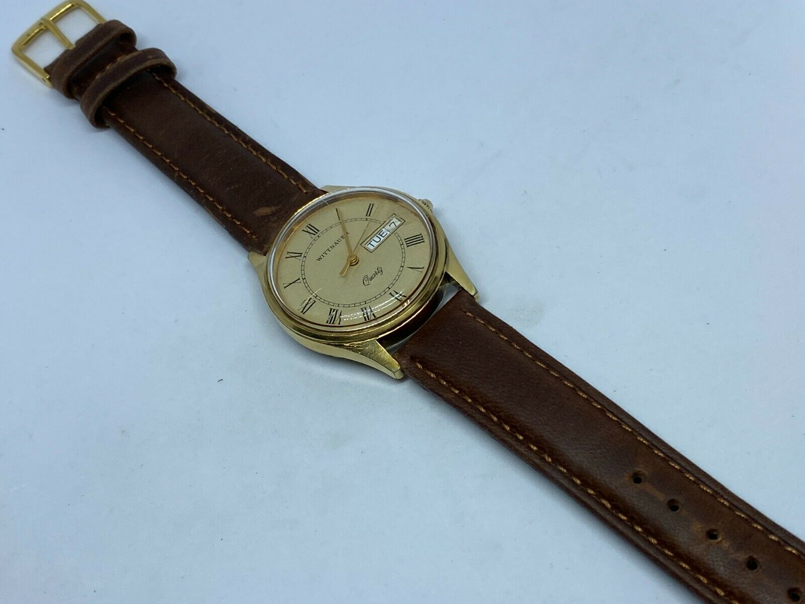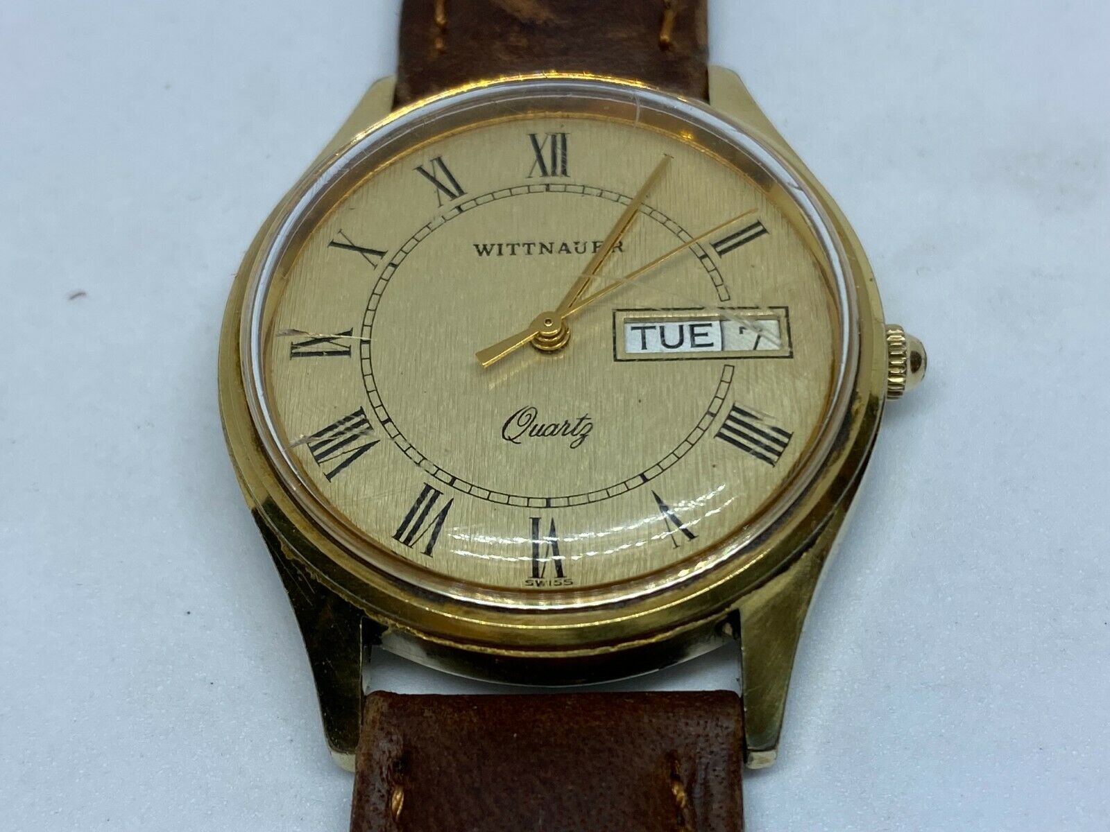All vintage and used watches are expected to show certain wear, from "hard to see" to light to significant. Such wear is particularly common on leather bands if equipped, which could be significant in some watches. We try to take clear pictures for each watch we offer to sell. It is important to review all images attached to listing to make your own judgment on the cosmetic condition of the watch.