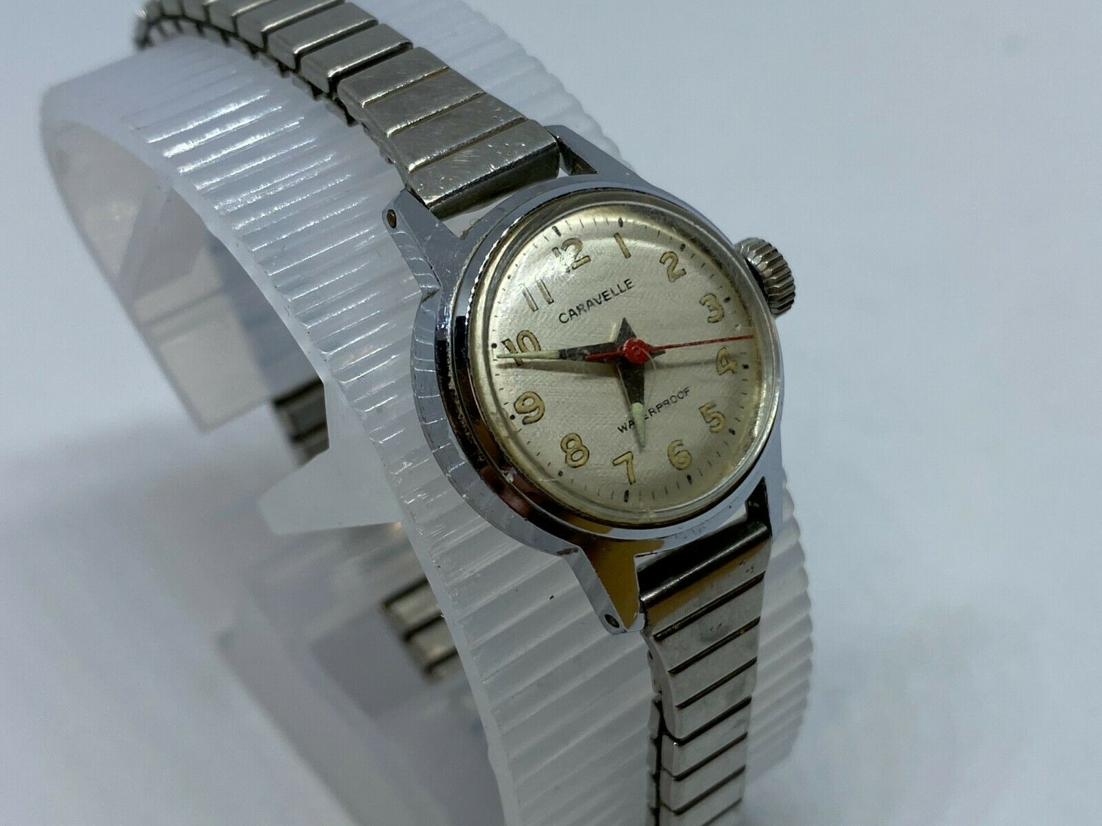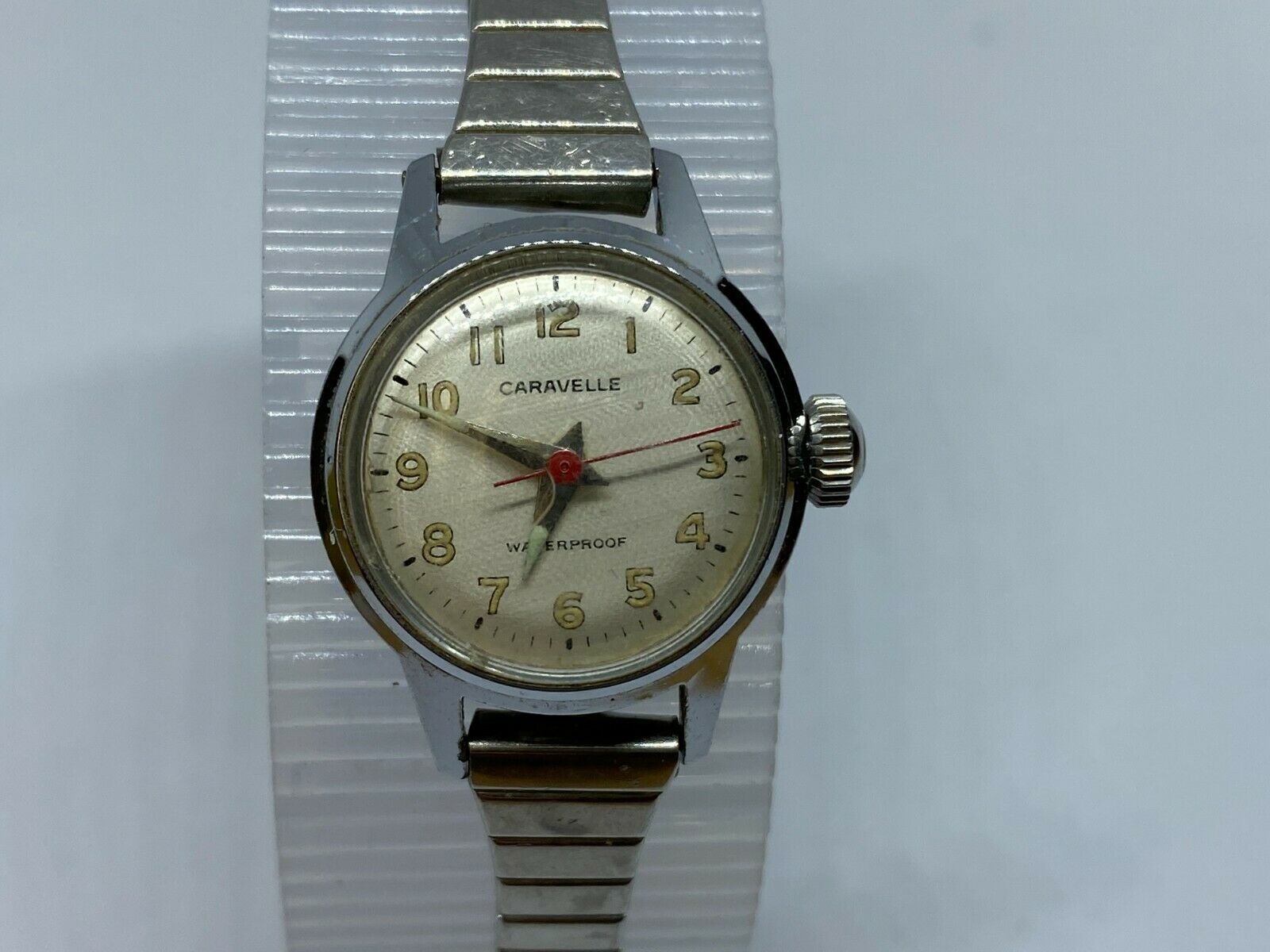 Being tested and monitored for a day or so, this watch runs strong and appears to keep time while being wound. Please review attached images to make your judgment on the cosmetic condition. These images are important part of the listing. You will get what you see (sorry but stand, table and ruler are not included). Please also reading entire text in the description regarding used, old, vintage watches in general. As an used vintage item in general, there might be some dirt, scratches, scuffs, discolorations, and/or other forms of wear here and there, but nothing major for the age in my view except for visible scratches on crystal, notable wear on case and band. Again, please carefully review images to make your own evaluation on cosmetic conditions from different angles. Please do not hesitate to ask if you have any questions.