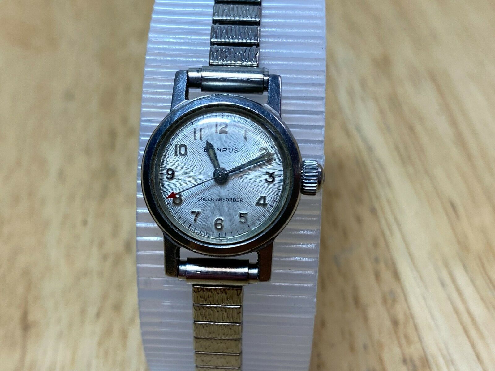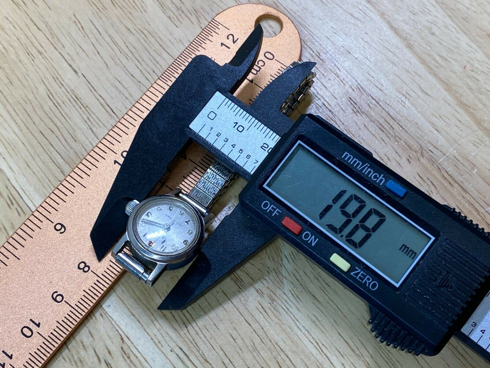 Being tested and monitored for a few hours, this watch runs strong and appears to keep time while being wound. However, long term performance have not been tested so are not guaranteed, although it appears to keep time within a short period of monitoring time. Please review attached images to make your judgment on the cosmetic condition. These images are important part of the listing. You will get what you see (sorry but stand, table and ruler are not included). Please also reading entire text in the description regarding used, old, vintage watches in general. As an used vintage item in general, there might be some dirt, scratches, scuffs, discolorations, and/or other forms of wear here and there, but nothing major for the age in my view except for visible scratches on crystal and notable wear on case. Again, please carefully review images to make your own evaluation on cosmetic conditions from different angles. Please do not hesitate to ask if you have any questions.