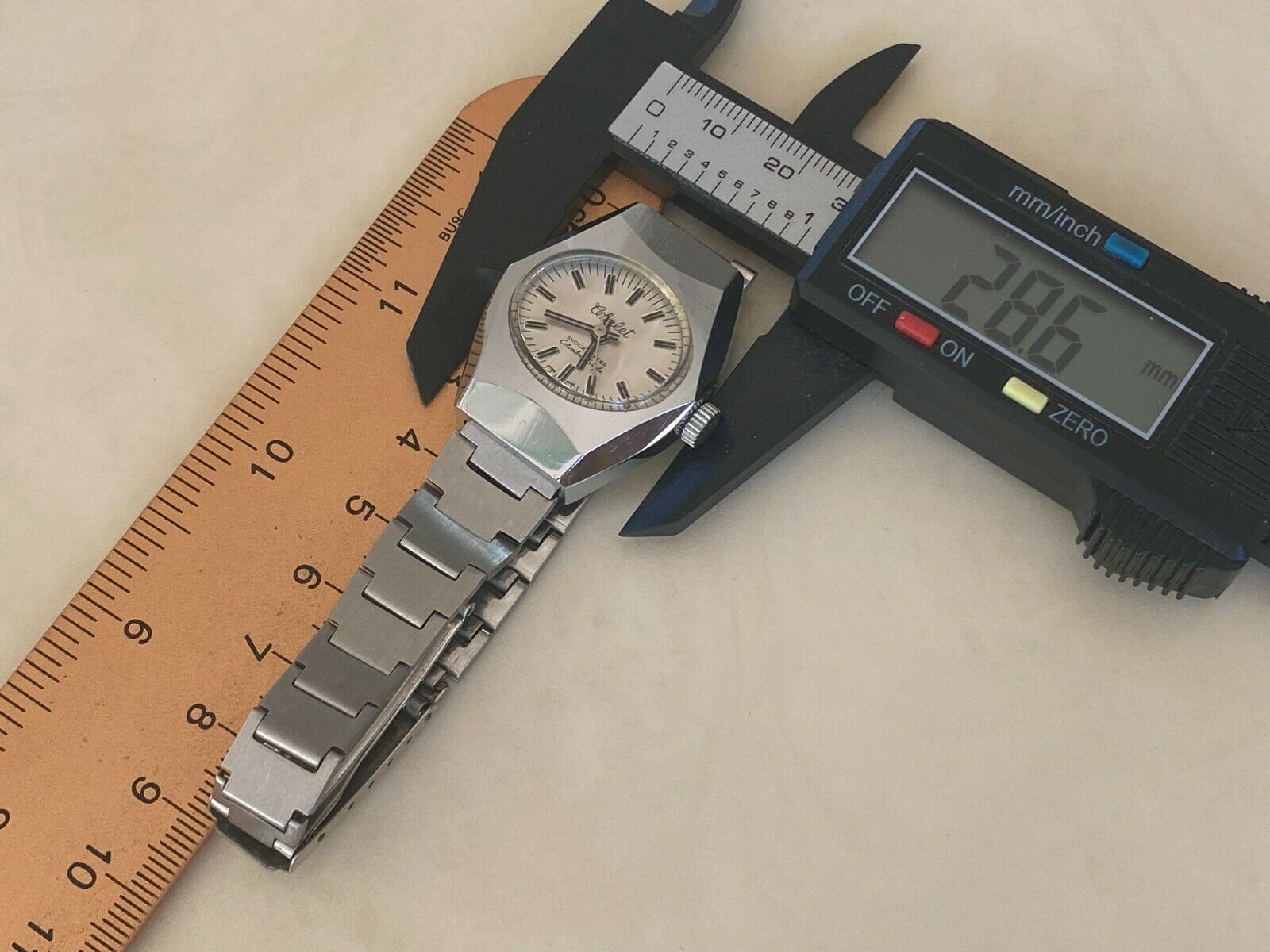 Being tested and monitored for a few hours, this watch runs strong and appears to keep time while being wound. However, long term performance have not been tested so are not guaranteed, although it appears to keep time within a short period of monitoring time. Please review attached images to make your judgment on the cosmetic condition. These images are important part of the listing. You will get what you see (sorry but stand, table and ruler are not included). Please also reading entire text in the description regarding used, old, vintage watches in general. As an used vintage item in general, there might be some dirt, scratches, scuffs, discolorations, and/or other forms of wear here and there, but nothing major for the age in my view. Again, please carefully review images to make your own evaluation on cosmetic conditions from different angles. Please do not hesitate to ask if you have any questions.