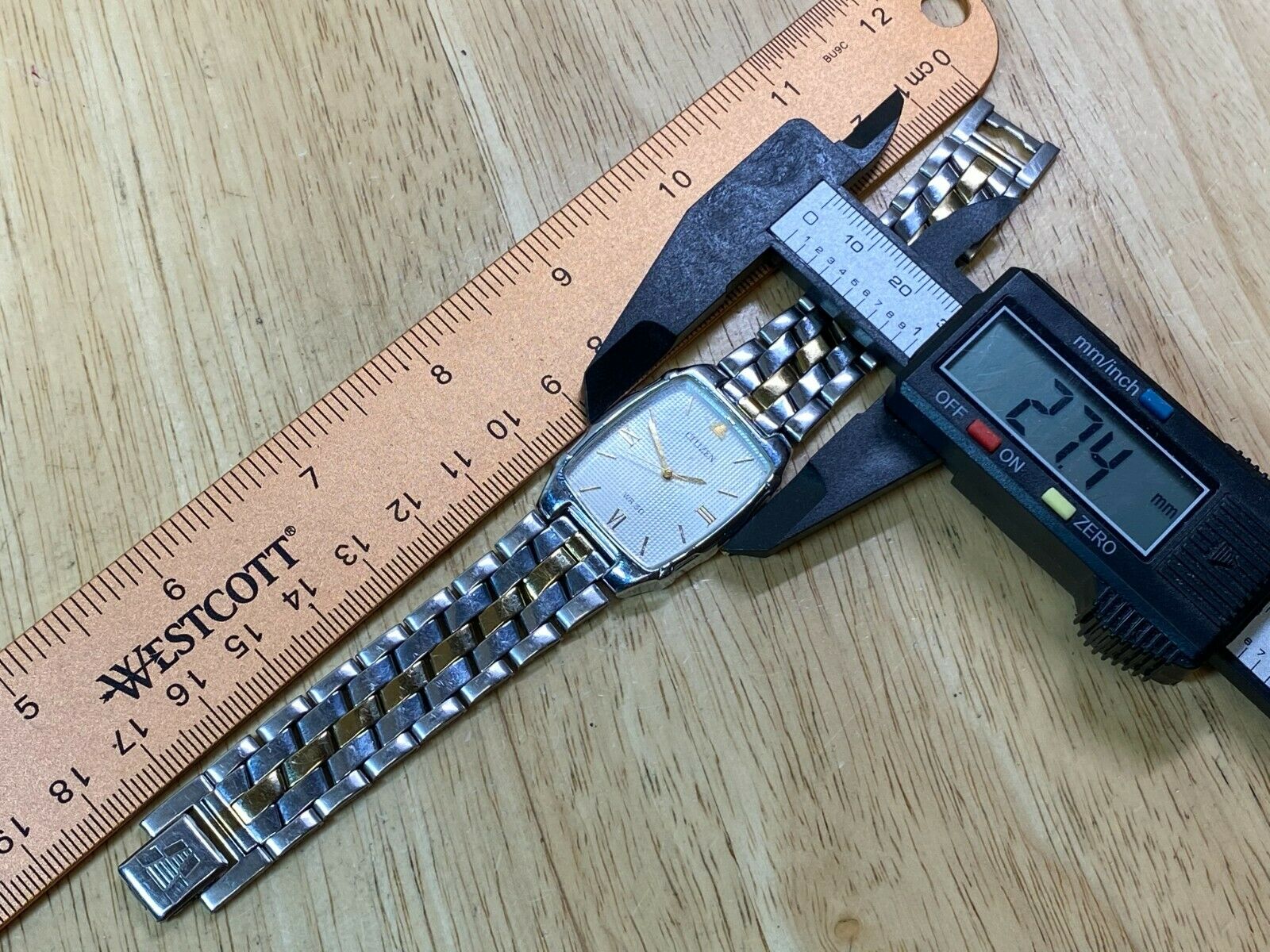 Watch dimension and size: please review the last image for size measurements. Shown on caliper is the approximate watch width in mm without crown or button.