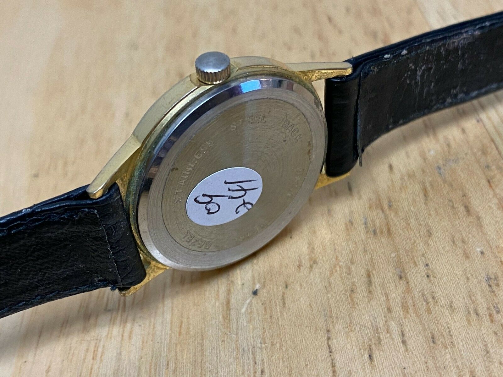 This watch runs but appears to keep fair time for its age. Please review attached images to make your judgment on the cosmetic condition. These images are important part of the listing. You will get what you see (sorry but stand, table and ruler are not included). Please also reading entire text in the description regarding used, old, vintage watches in general. As an used vintage item in general, there might be some dirt, scratches, scuffs, discolorations, and/or other forms of wear here and there, but noting major for the age in my view except for some light but visible scratches on crystal, notable wear on band. Again, please carefully review images to make your own evaluation on cosmetic conditions from different angles. Please do not hesitate to ask if you have any questions.