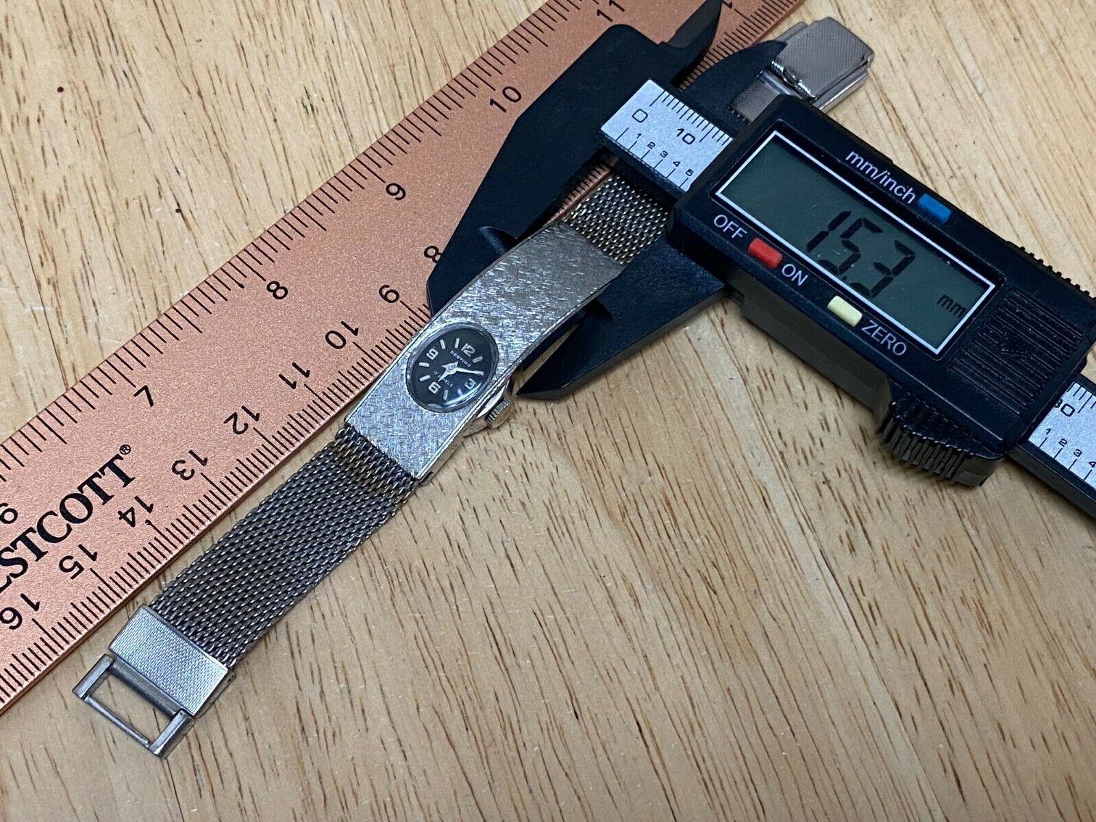 Being tested and monitored for a day or so, this watch runs strong and appears to keep time while being wound. Please review attached images to make your judgment on the cosmetic condition. These images are important part of the listing. You will get what you see (sorry but stand, table and ruler are not included). Please also reading entire text in the description regarding used, old, vintage watches in general. As an used vintage item in general, there might be some dirt, scratches, scuffs, discolorations, and/or other forms of wear here and there, but nothing major for the age in my view except for notable wear on case band, visible scratches and an internal chip on crystal. Again, please carefully review images to make your own evaluation on cosmetic conditions from different angles. Please do not hesitate to ask if you have any questions.