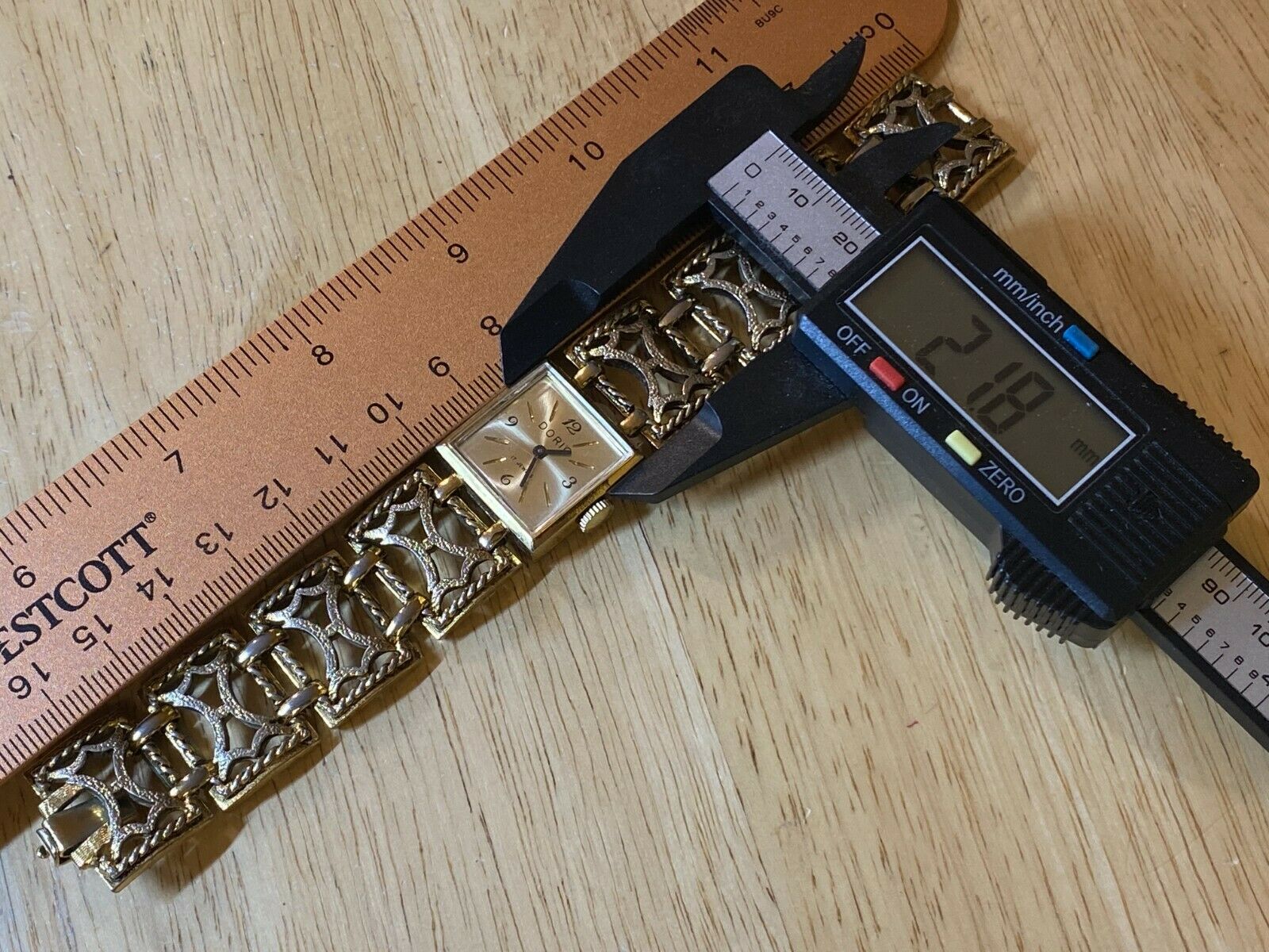 For approximate size of the watch and length of band, please see the last image with a ruler scale placed next tho the watch.