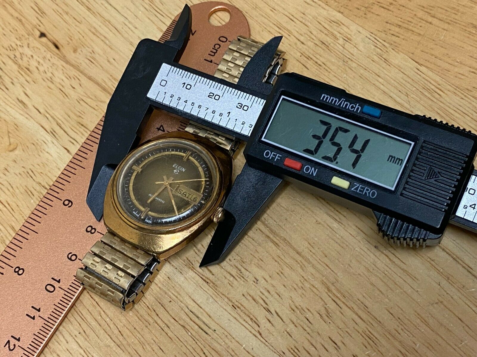 For approximate size of the watch and length of band, please see the last image with a ruler scale placed next to the watch. Please be advised that this is an used watch; its band may have been adjusted (shortened, links removed etc) to fit wrist of the previous owner; we DON'T have extra links. So it is very important to make sure the overall length will be long enough for your wrist.