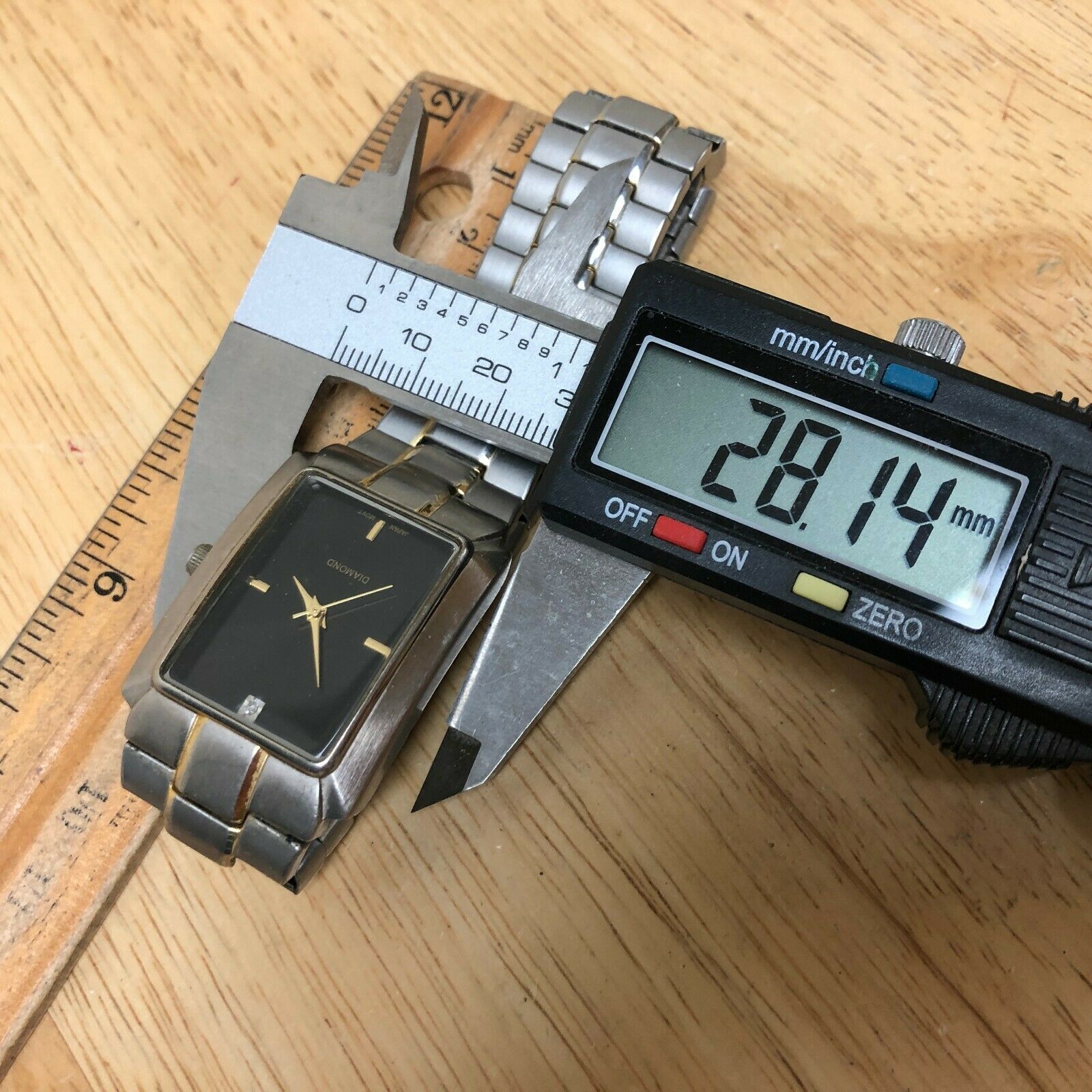 Watch dimension and size: please review the last image for size measurements. Shown on caliper is the approximate watch width in mm without crown or button.