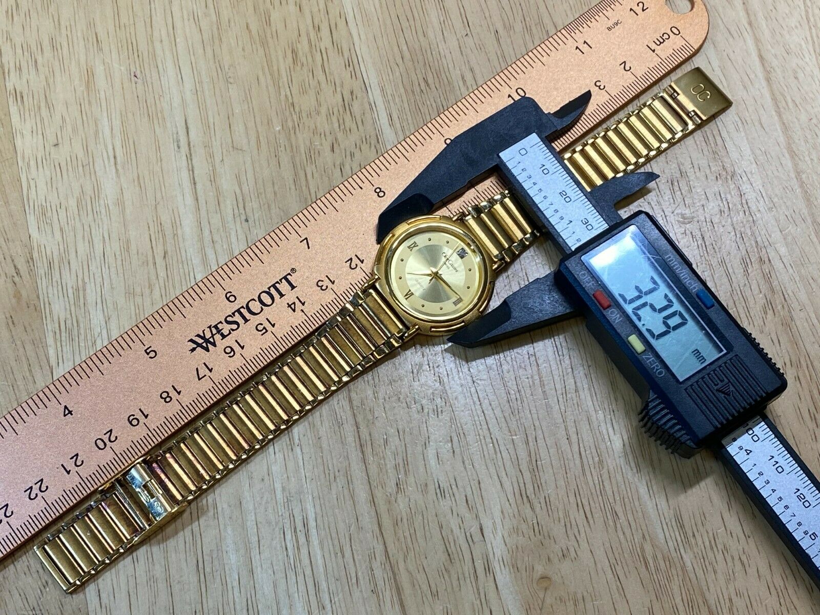 Watch dimension and size: please review the last image for size measurements. Shown on caliper is the approximate watch width in mm without crown or button.