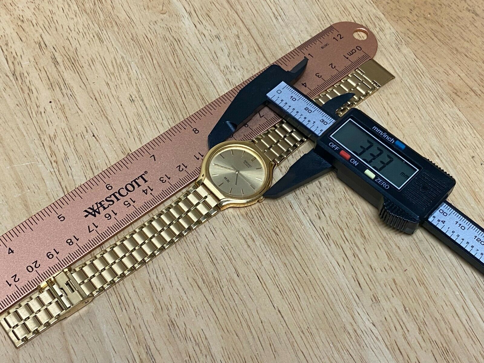 Watch dimension and size: please review the last image for size measurements. Shown on caliper is the approximate watch width in mm without crown or button.