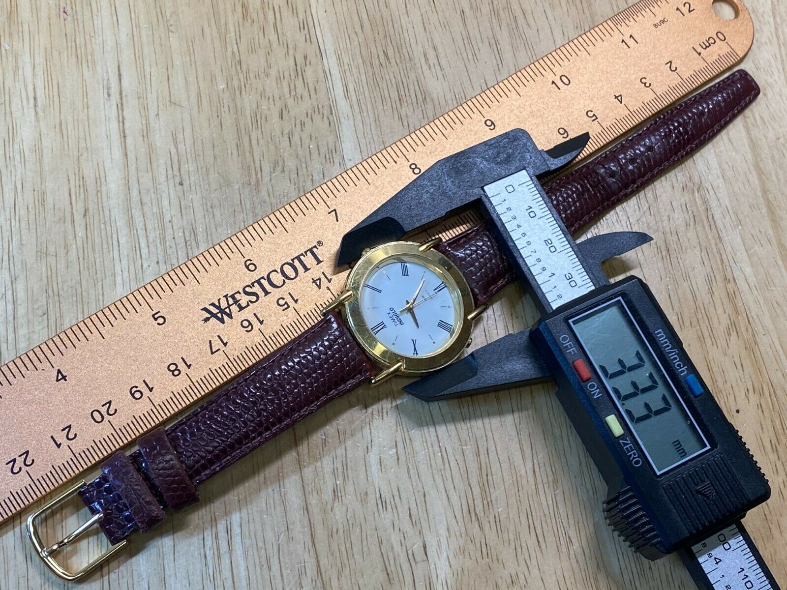 Watch dimension and size: please review the last image for size measurements. Shown on caliper is the approximate watch width in mm without crown or button.