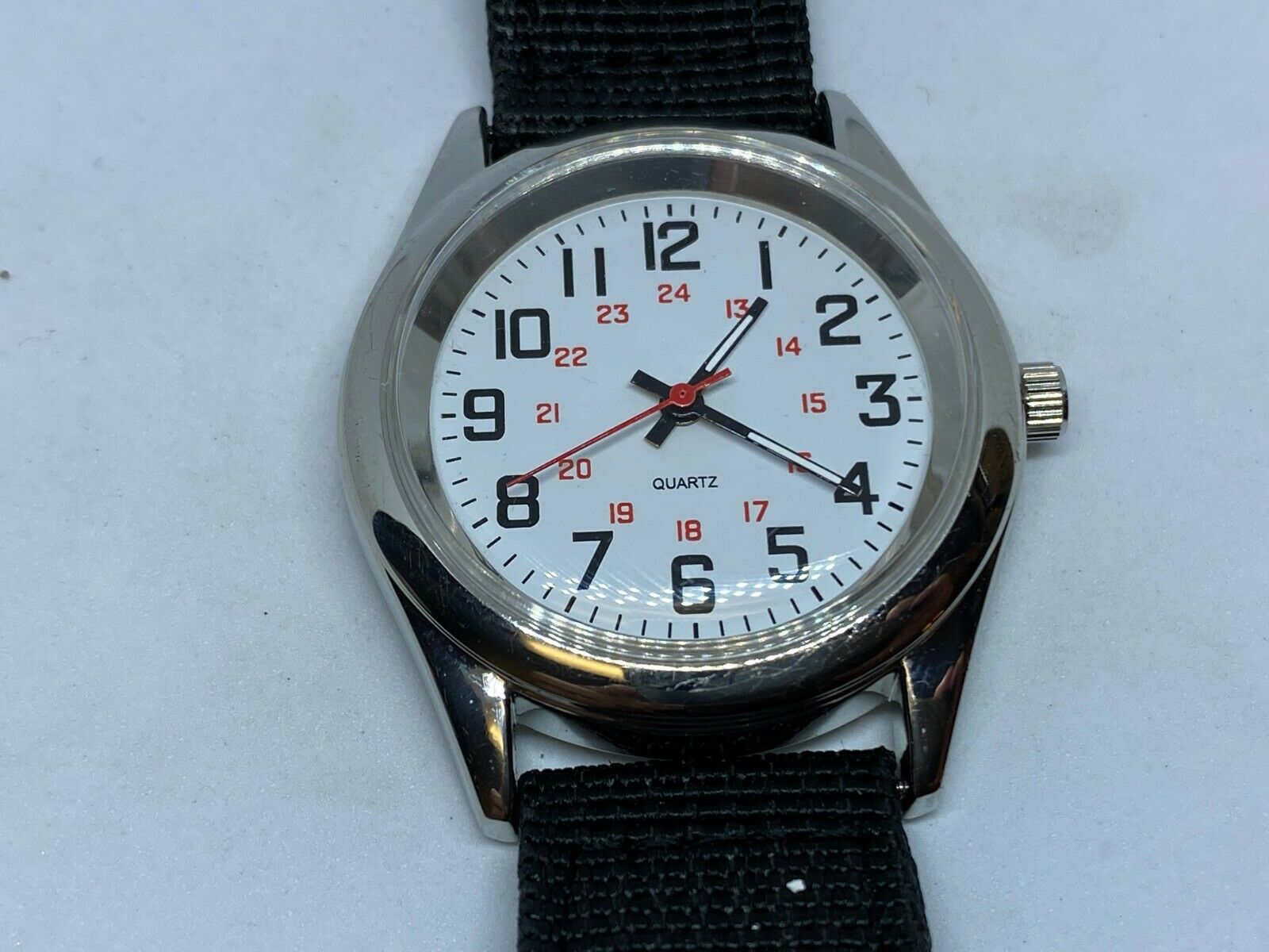 • Load image into Gallery viewer, VTG Accutime Men Silver White Military Dial Analog Quartz Watch Hour~New Battery