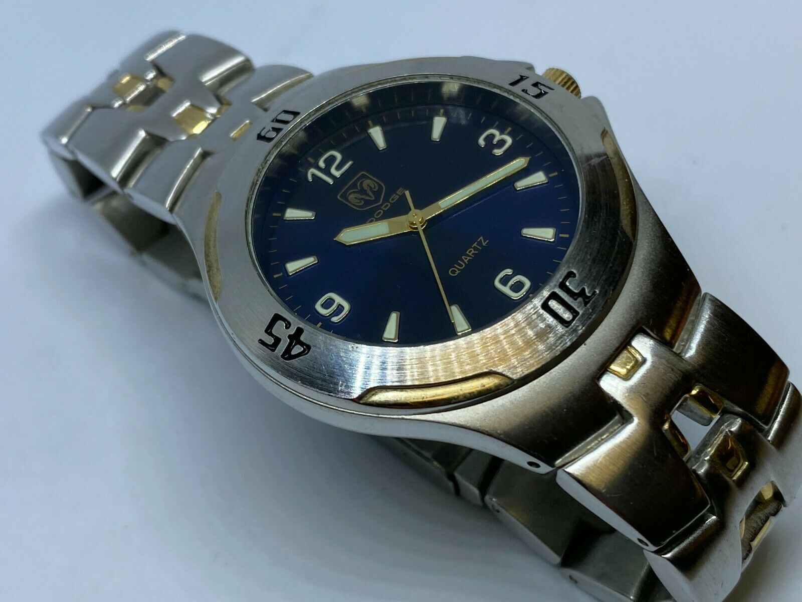 VTG Dodge Chrysler Men Japan Movt Silver Blue Analog Quartz Watch Hours~New Batt