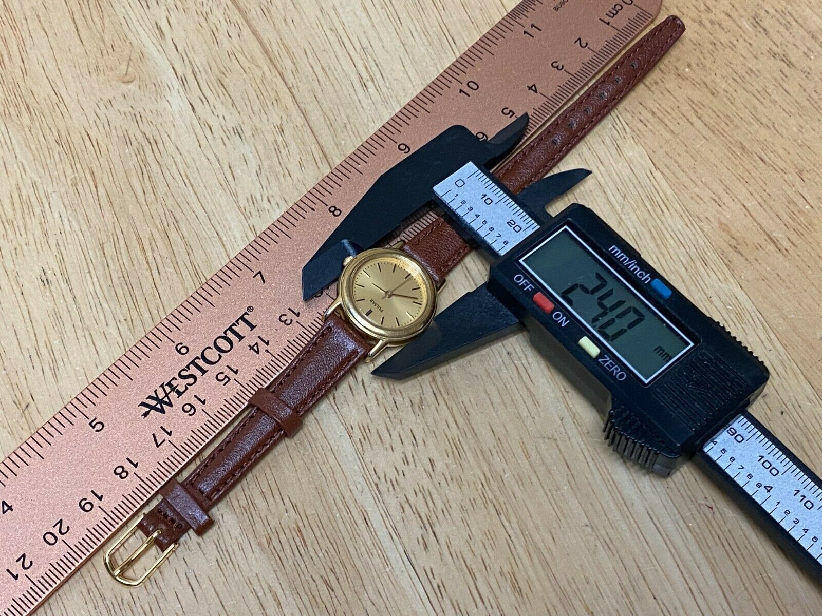 Watch dimension and size: please review the last image for size measurements. Shown on caliper is the approximate watch width in mm without crown or button.