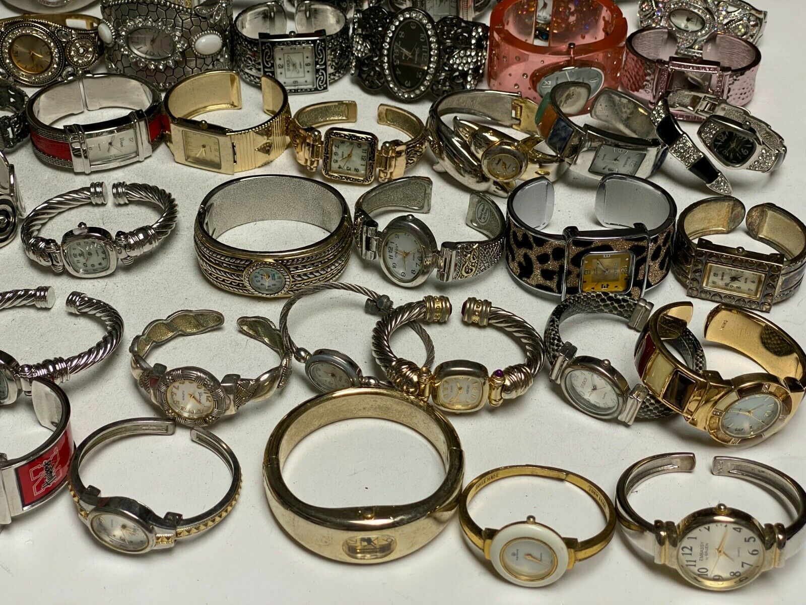You are viewing Watch Lot~60 Cuff Bangle Watches ~ Manhattan Geneva Embassy Chico's ~ Untested.